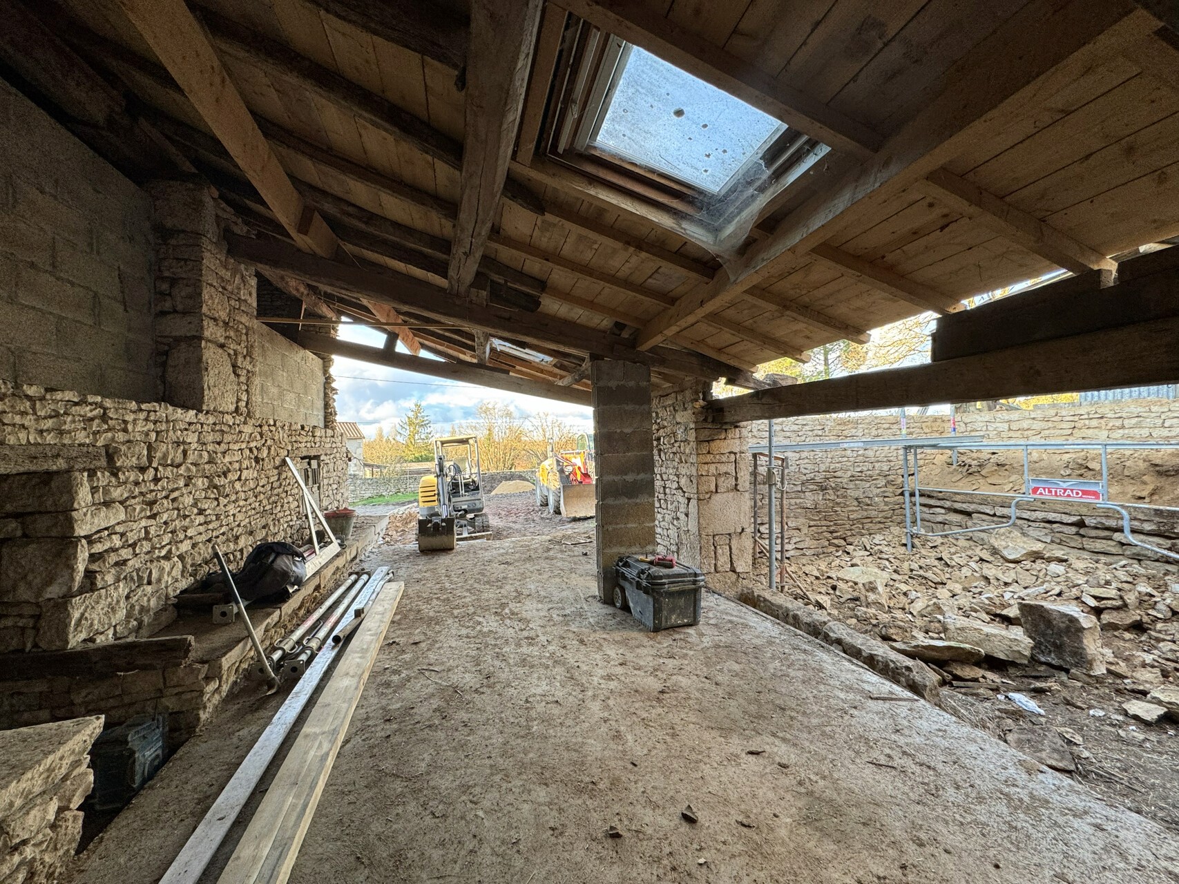 Transformation d'une grange en une chambre, salle debain et courette,